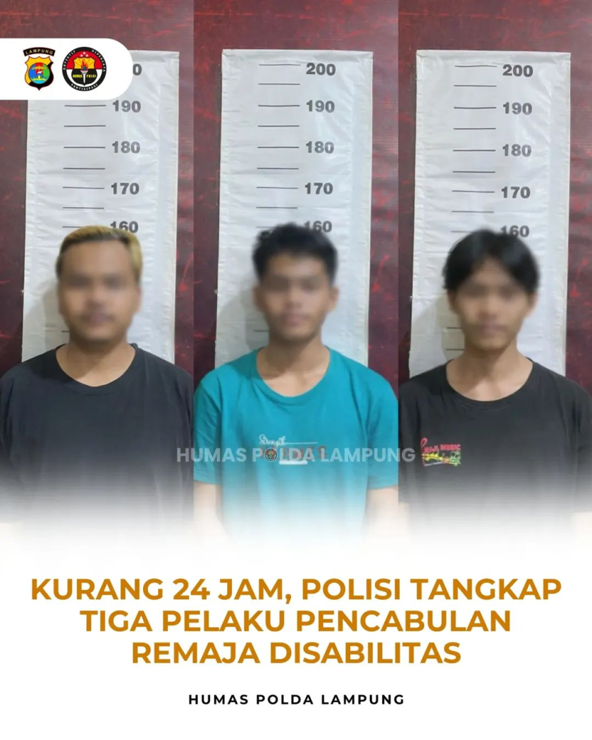 Satuan Reserse Kriminal (Satreskrim) Polres Metro berhasil mengungkap kasus pencabulan terhadap seorang remaja perempuan penyandang disabilitas. Dalam pengungkapan tersebut, polisi mengamankan tiga orang terduga pelaku yang diduga melakukan perbuatan keji secara bergilir.