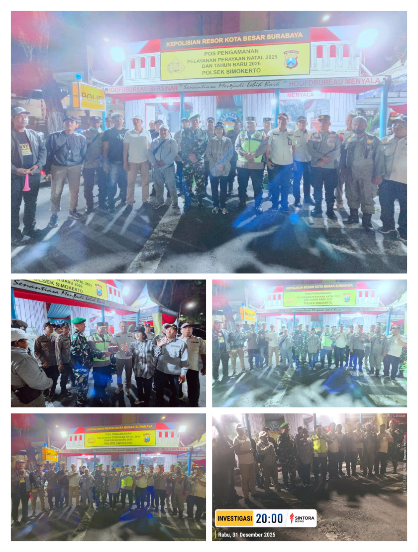 Pengamanan Malam Tahun Baru 2026 di wilayah Kecamatan Simokerto melibatkan unsur TNI, Polri, Satpol PP, serta instansi terkait lainnya, dengan fokus pada pusat-pusat aktivitas masyarakat, jalur utama, dan lokasi strategis. Langkah ini diharapkan mampu menciptakan suasana perayaan yang aman, tertib, dan terkendali.
