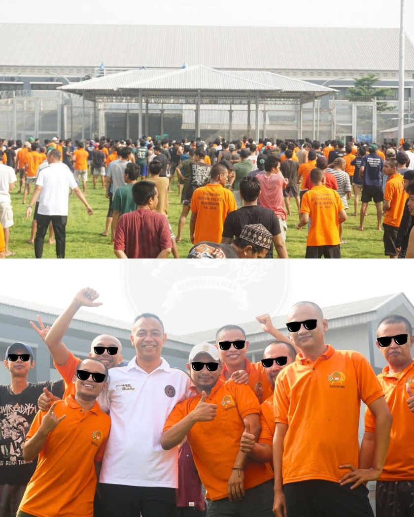 Kepala Rutan Kelas I Surabaya, Tristiantoro Adi Wibowo, tampak berbaur langsung dengan warga binaan. Tanpa rasa canggung, ia menyapa, berdialog, dan bercengkrama dalam suasana santai namun tetap tertib. Pendekatan ini memberikan rasa nyaman serta menghadirkan nilai-nilai kemanusiaan dalam proses pembinaan.