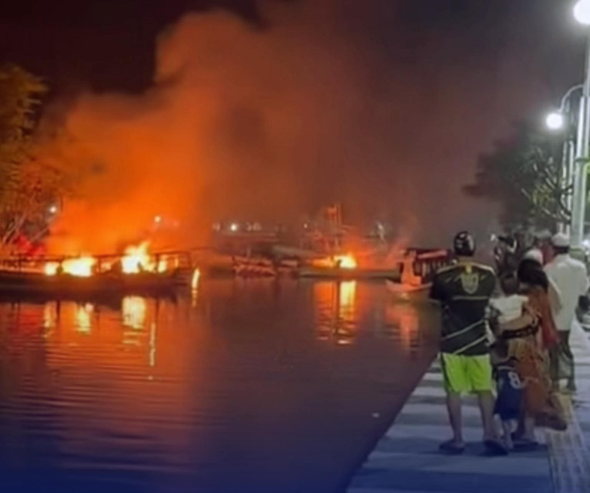 Dalam eskalasi konflik tersebut, terjadi aksi anarkis berupa pembakaran perahu yang sandar di pesisir. Api dengan cepat membesar dan melahap perahu-perahu nelayan, sementara kepulan asap tebal terlihat membumbung tinggi di lokasi kejadian, memicu kepanikan warga sekitar.